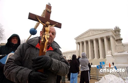 2005年1月24日,數(shù)萬(wàn)民眾聚集在美國(guó)首都華盛頓最高法院前,舉行聲勢(shì)浩大的“反墮胎”游行,呼吁全面禁止墮胎,布什總統(tǒng)對(duì)此表示支持。Ic/cnsphoto 攝