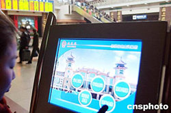 一月二十六日,準(zhǔn)備返鄉(xiāng)的乘客正在北京站電子查詢機(jī)前查詢新增臨時客車情況。十臺春運(yùn)乘車查詢機(jī)二十五日在北京站投入使用,乘客可以自行查詢往返車次、新增臨時客車、車票情況等十多項內(nèi)容。作者:韓藝冰