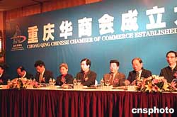 一月二十六日,重慶市華商會(huì)宣告成立。以二點(diǎn)一億元人民幣捐贈(zèng)額而高居“二00四年中國(guó)內(nèi)地慈善企業(yè)家排行榜”榜首的僑商黃如論當(dāng)選首任會(huì)長(zhǎng)。圖為成立大會(huì)現(xiàn)場(chǎng)。作者:范卉