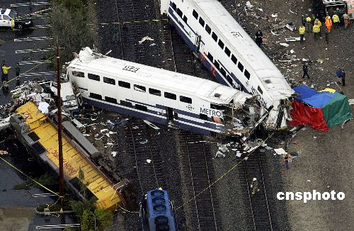 當(dāng)?shù)貢r(shí)間26日晨6時(shí)許,洛杉磯市與格蘭戴爾市邊境地帶的圣弗南度路(SAN FERNANDO)和切維切茲(CHEVY CHASE)路附近發(fā)生一起6年來(lái)全美未見的重大鐵路交通事故。一輛從洛杉磯西郊(MOORPARK)駛往洛杉磯聯(lián)合火車站的通勤列車和一輛從洛杉磯聯(lián)合火車站駛往圣弗南度谷的通勤列車在撞到一輛被遺棄的多功能越野車后對(duì)撞,造成重大傷亡。