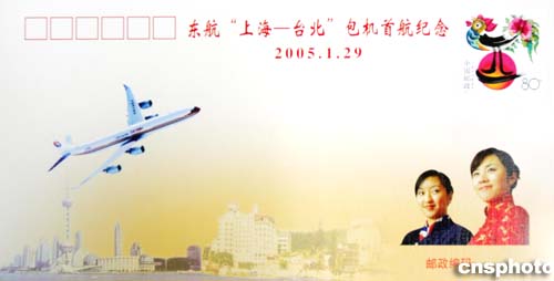 圖:東航制作臺商春節(jié)包機首航紀念封