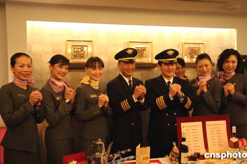 圖:臺灣“復(fù)興”航空首航臺商春節(jié)包機(jī)機(jī)組人員