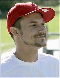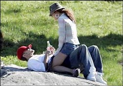 凱文-費德林今年26歲,已經(jīng)是兩個孩子的父親。去年和布蘭妮-斯皮爾斯結婚后感情一直很穩(wěn)定,最近更是和小甜甜一起去拉斯維加斯度假。晚一天到達賭城的布蘭妮一來就奔放地跳到老公腿上,把前已晚還享受過別人大腿舞的凱文-費德林嚇了一跳。