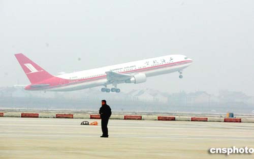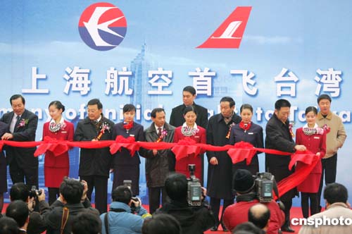 一月二十九日上午八點(diǎn),上海航空首飛臺(tái)灣歡送儀式在浦東國(guó)際機(jī)場(chǎng)舉行,上海各界人士在停機(jī)坪為返鄉(xiāng)過年的二百多名臺(tái)商送行。作者:湯彥俊