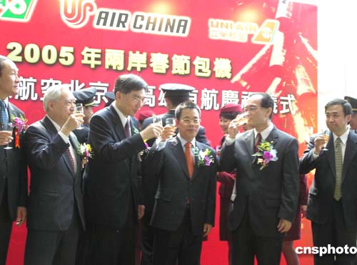 中國(guó)國(guó)際航空公司的臺(tái)商春節(jié)包機(jī)于二十九日上午十一時(shí)二十分許安全降落在臺(tái)灣高雄小港機(jī)場(chǎng)。這是五十六年來大陸民航班機(jī)首次飛抵臺(tái)灣地區(qū)的高雄市。