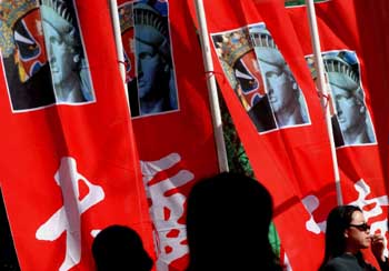 中新社洛杉磯一月二十九日電(記者賈國(guó)榮) 兩岸三地四百多華商今天云集洛杉磯,成千上萬(wàn)華人華僑和美國(guó)各種族來(lái)賓薈萃一堂,布什總統(tǒng)發(fā)來(lái)賀信,熱烈祝賀第二十四屆華人工商大展開(kāi)幕。