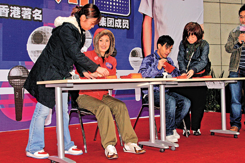 活動當(dāng)日,氣溫驟降,還下著毛毛細雨,不過大批歌迷為目睹偶像,不惜冒雨出席,有些歌迷更不怕危險,在沒有圍欄的平臺上,遠望二位偶像。適逢二月三日是楊千嬅生日,大會特別安排一個神秘的生日會,為千嬅預(yù)祝生日。由Edmond唱出生日歌、歌迷送上蛋糕給壽星女,Edmond又特別送上一盛滿朱古力傘仔給千嬅,喻意千嬅成為樂壇一姐。