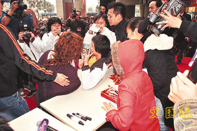 中新網(wǎng)2月1日電 據(jù)大公報報道,楊千嬅完成廣州的演唱會后,日前她與梁漢文(Edmond)出席廣州某卡拉OK新店的開幕儀式上,千嬅和Edmond出現(xiàn),吸引逾千的圍觀者。雖然現(xiàn)場已加派二百名保安維持秩序,也難控制混亂場面,結(jié)果活動被腰斬,不少歌迷因為得不到千嬅和Edmond的簽名,最后失望而回,二人也感到不好意思。