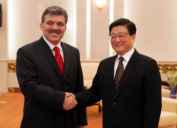 黃菊說,中土都是文明古國,兩國人民有深厚的傳統(tǒng)友誼。近年來,雙方各領域合作不斷發(fā)展。中土加強合作符合兩國人民的共同愿望和根本利益。中方愿與土方一道,把中土友好合作關系推向新水平。