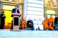 據(jù)悉,集會有一百多人參加,紐森市長、國會議員普洛西、蘭托斯及州議員里諾等都派代表出席。