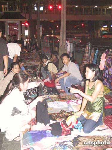 夜晚的曼谷則霓虹閃爍,一派歌舞升平景象。市中心五彩燈下的人行道上,擺滿了各式旅游商品,游人穿梭不息。在記者住宿的拉馬達街,晚上十二點多,“全家!睙敬笈艡n依然熱鬧。他們和附近的迪廳、酒吧等娛樂場所一樣,要“鬧”到第二天凌晨二時才會打烊。隔街的“七一一”連鎖便利店,二十四小時營業(yè),不時有興致沖沖的購物者推門而入。