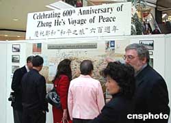 華人舉辦“慶祝鄭和和平之旅六百周年”紀念展,向美國主流社會介紹鄭和下西洋及中國歷史文化。作者:余東暉