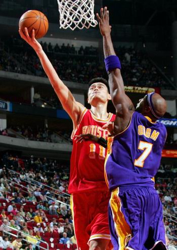 第二節(jié)比賽開始后,湖人打出一波攻擊,將比分差距縮小到37-34。不過關(guān)鍵時(shí)候姚明再次發(fā)威,連續(xù)得分將比分差距再次拉大,在半場(chǎng)結(jié)束時(shí)以50比39領(lǐng)先。
