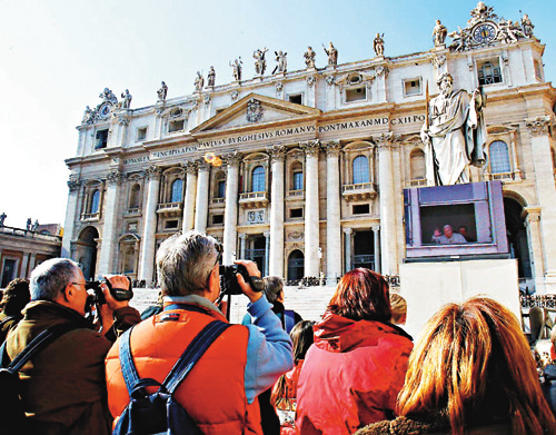 圣彼得廣場(chǎng)的朝圣者上周日聆聽教皇祝福。(路透)