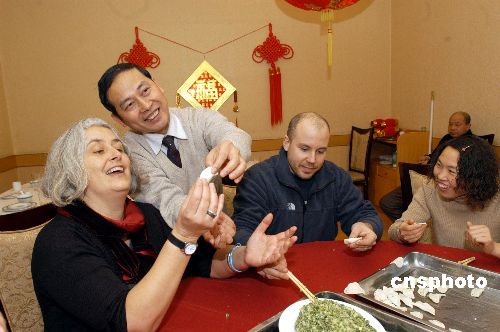 2月7日,“無國界醫(yī)生組織”湖北襄樊艾滋病治療和關(guān)懷項目辦公室的外國專家們,度過了一個充滿濃郁中國氣息的節(jié)日。新西蘭的琳達女士、瑞典的尼科拉斯先生同中國同行一起掛中國結(jié)、包餃子,用筷子吃中餐,感受地道的中國年。作者:邱厚強