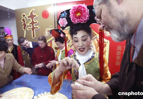 二月八日是中國(guó)傳統(tǒng)的除夕之夜,來自法國(guó)、英國(guó)等國(guó)家的六十余位外國(guó)友人在北京朝陽麥子店街道社區(qū)度過了一個(gè)極富中國(guó)傳統(tǒng)民俗特色的除夕之夜,他們與社區(qū)居民一同看演出、品嘗中國(guó)傳統(tǒng)美食、對(duì)對(duì)聯(lián)、學(xué)做中國(guó)手工水餃。作者:任海霞