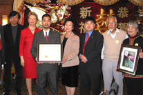 在熱鬧的新春聯(lián)誼會(huì)上,市大法學(xué)院向支持余百康上訴的市議員劉醇逸辦公室頒獎(jiǎng),感謝劉醇逸及其他的辦公室工作人員為余百康伸張正義所做出的努力。