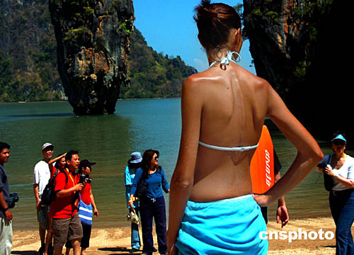 2月中旬的泰國布吉島一處箸名旅游景點,游客絡繹不絕,游性濃厚。海嘯地震過后,到這里旅游的客人日益增多,當?shù)芈糜螛I(yè)正在逐步復蘇。作者:宋吉河