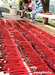 2月中旬的泰國(guó)布吉島一處旅游景點(diǎn)上,一處銷售旅游紀(jì)念品的地?cái)偡滞庑涯俊?/p>