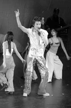 據(jù)悉,演出開始前半小時(shí),日本澀谷代代木體育館雙層演藝廳早已爆滿。胡兵身披華服出場(chǎng),滿座皆驚、全場(chǎng)轟動(dòng)、呼聲四起,中日FANS高喊著“胡兵”的名字。其后,簡(jiǎn)潔大方、聲光電絢麗的舞臺(tái),現(xiàn)代街舞熱辣而奔放,胡兵首首中文歌曲聲情并茂的演繹,結(jié)合自己時(shí)而激揚(yáng)、時(shí)而感傷的傳神的舞臺(tái)表現(xiàn),令全場(chǎng)觀眾陶醉其中。