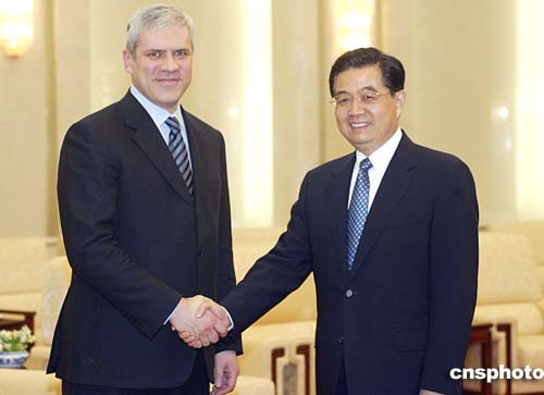 圖:胡錦濤會見塞黑塞爾維亞共和國總統(tǒng)