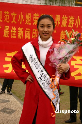 二月二十六日晚,第七屆世界旅游小姐總決賽在津巴布韋首都哈拉雷落幕。作為中國內(nèi)地首次選出的參賽代表,二十二歲的范文,憑借迷人的微笑、良好的氣質(zhì)和優(yōu)秀的語言能力等優(yōu)異表現(xiàn),受到世界各大新聞媒體的青睞,榮獲本次大賽的“最佳新聞媒體印象獎(jiǎng)”單項(xiàng)獎(jiǎng),向世界展示了中國旅游和中國女性的新面貌。