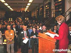 “二00五年亞裔年錄”發(fā)表會(huì)三月一日在此間國(guó)會(huì)圖書館舉行,包括國(guó)會(huì)圖書館館長(zhǎng)畢凌頓、亞洲部主任李華偉、勞工部財(cái)務(wù)長(zhǎng)莫天成、眾議院亞太裔議員本田、聯(lián)邦亞太裔議會(huì)、國(guó)際中國(guó)文化出版社及來自各亞太裔社區(qū)人士約二百人出席。