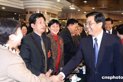 中新社北京三月四日電 中共中央總書(shū)記、國(guó)家主席、中央軍委主席胡錦濤今天下午看望了參加全國(guó)政協(xié)十屆三次會(huì)議民革、臺(tái)盟、臺(tái)聯(lián)界委員,并參加聯(lián)組會(huì),聽(tīng)取委員們的意見(jiàn)和建議。他強(qiáng)調(diào),我們要堅(jiān)持以鄧小平理論和“三個(gè)代表”重要思想為指導(dǎo),繼續(xù)貫徹“和平統(tǒng)一、一國(guó)兩制”的基本方針和現(xiàn)階段發(fā)展兩岸關(guān)系、推進(jìn)祖國(guó)和平統(tǒng)一進(jìn)程的八項(xiàng)主張,繼續(xù)以最大的誠(chéng)意、盡最大的努力爭(zhēng)取和平統(tǒng)一的前景,同時(shí)絕不容忍“臺(tái)獨(dú)”,絕不允許“臺(tái)獨(dú)”分裂勢(shì)力以任何名義、任何方式把臺(tái)灣從祖國(guó)分割出去。
