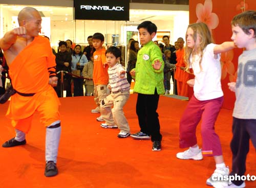 少林武術(shù)團(tuán)日前來香港表演時(shí),武教頭現(xiàn)場(chǎng)教練香港小朋友武功,以廣大中國(guó)傳統(tǒng)武術(shù),增進(jìn)兩地友情。作者:宋吉河