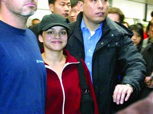 剛剛結(jié)束在漢城的個唱,諾拉·瓊斯及樂隊、工作人員一行20多人直接飛到北京。由于她一向低調(diào),故機場除了幾家媒體接機外,未見歌迷。在飛機落地半個多小時后,頭戴黑色棒球帽、身著紅色運動衣的諾拉·瓊斯在工作人員的包圍中走出了安檢口。等候多時的攝影記者們剛舉著機器沖上前,就被主辦方唐西文化請來的4名保衛(wèi)人員攔住。諾拉·瓊斯身邊的一男子立即把嬌小的她護在臂彎里,客氣地拒絕了記者的拍照。原本滿臉倦意的諾拉·瓊斯露出了歉意的笑容,在前呼后擁中直接上了等候在外的別克車上。
