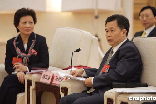 十屆全國(guó)人大三次會(huì)議第二次全體大會(huì)三月八日在北京人民大會(huì)堂舉行,會(huì)議結(jié)束后,各代表團(tuán)舉行全體會(huì)議審議反分裂國(guó)家法草案。圖為陳蔚文代表在臺(tái)灣代表團(tuán)會(huì)議上發(fā)言。作者:毛建軍