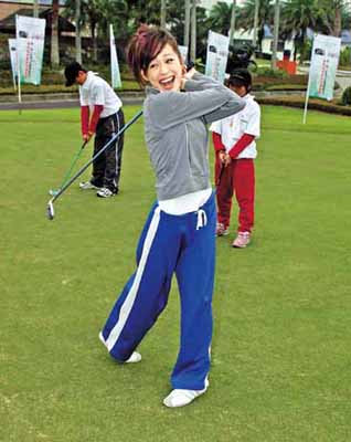 近來忙著宣傳“Honey”專輯的王心凌昨(9)日開心應(yīng)兒童福利聯(lián)盟之邀,前往高爾夫球場大展球技,同行小朋友忙著要“心凌姊姊”簽名,簽完帽子簽T恤,少少10個(gè)人花了快20分鐘才搞定,讓她揮筆比揮桿手還酸。
