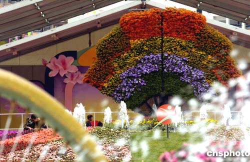 “2005年香港花卉展覽”將在3月11日至20日在維多利亞公園舉行,3月10日,康樂(lè)及文化事務(wù)署參展的作品“扇動(dòng)風(fēng)聲、風(fēng)聲水起”,表達(dá)生機(jī)勃勃,寓意香港經(jīng)濟(jì)蒸蒸日上。作者:洪少葵