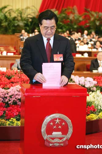 圖:胡錦濤在人大會(huì)上投票