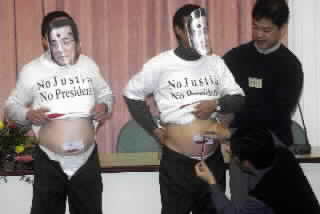 中新網(wǎng)3月14日電 “319槍擊案”發(fā)生將屆滿一周年,臺灣的“國策會(huì)”13日舉辦研討會(huì),找來5名體型和陳水扁相似的志愿民眾,依照刑事局和李昌鈺的鑒識報(bào)告,把褲子穿在肚臍以下8厘米的位置,而內(nèi)褲則穿在肚臍以下14厘米的位置;藉此諷刺陳水扁“319”當(dāng)天穿著“低腰褲”,掃街拜票;更抨擊鑒識報(bào)告的公正性。