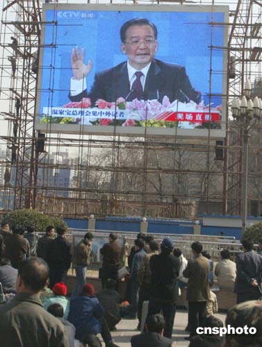 圖:百姓關(guān)注溫家寶會(huì)見中外記者