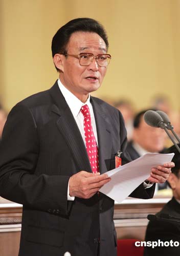圖:吳邦國(guó)委員長(zhǎng)在人大閉幕會(huì)上發(fā)表講話