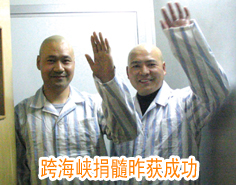 生命的希望從海峽傳來了。二00四年八月,在劉忠祥等志愿者和徐州市相關部門的努力下,遠在臺灣花蓮市的世界最大的華人骨髓資料庫——臺灣慈濟骨髓干細胞中心在對骨髓庫進行檢索后找到了與張猛、李懷剛基因相符的配型。經(jīng)過兩岸工作人員最細致的篩選,兩名年齡分別為二十二歲和三十三歲的臺灣女青年被確定為最終的配對者。張猛和李懷剛的生命重燃希望。