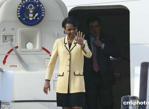 三月二十日下午,美國國務卿賴斯抵達北京機場。作者:廖文靜