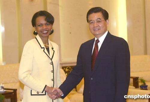 圖:胡錦濤會見美國國務(wù)卿賴斯