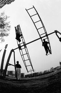 體能訓(xùn)練近乎殘酷。在最初的一個(gè)半月的封閉訓(xùn)練中,她們沒有一天的休整機(jī)會(huì),練隊(duì)列、拉單杠、撐雙杠、轉(zhuǎn)旋梯、繞滾輪、跑3000米……每天都是超負(fù)荷訓(xùn)練。按過去的慣例,這段日子,她們每人平均磨壞3雙運(yùn)動(dòng)鞋。隨后是跳傘訓(xùn)練,這種訓(xùn)練既學(xué)習(xí)飛行員自救的方式,也錘煉心理承受能力和頑強(qiáng)的戰(zhàn)斗精神。每天,女學(xué)員都要在兩米高的跳臺上爬上、爬下數(shù)百次。