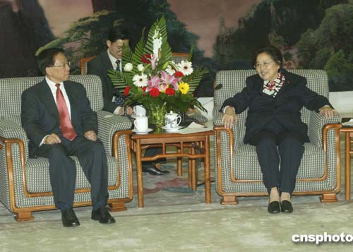 三月二十二日,全國人大常委會副委員長何魯麗在北京人民大會堂會見吳顯揚、關其煉團長率領的芝加哥中華會館訪華團。作者:史利