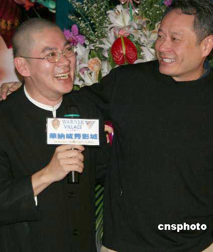 獲柏林電影節(jié)銀熊獎的影片《天邊一朵云》在全臺公映。該片因有暴露的性愛鏡頭而引起一些爭議。圖為3月18日晚,曾獲奧斯卡獎的名導演李安(右)在臺北出席該片首映式時,與該片導演蔡明亮相見甚歡。作者:董會峰