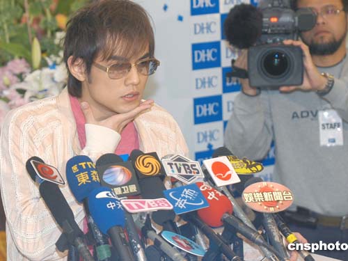 人氣偶像周杰倫3月23日在香港出席日本化妝品牌DHC在港第五分店開幕儀式。儀式過后接受眾多傳媒訪問。作者:鄧慶樂