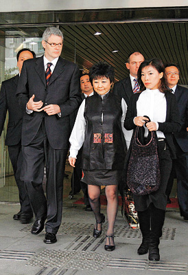 在歷時(shí)10分鐘的提訊過(guò)程中,“見(jiàn)慣大場(chǎng)面”的龔如心表現(xiàn)冷靜。昨日顯得容光煥發(fā),除了一頭整齊短發(fā)外,更以黑色唐裝配上一條黑色超短裙,及一對(duì)黑色長(zhǎng)絲襪及高跟鞋,唇上更涂上桃紅色口紅。在提訊后約10分鐘,龔如心便付妥保釋金,在大批保鏢的護(hù)送下,面帶笑容離開(kāi)東區(qū)法院。