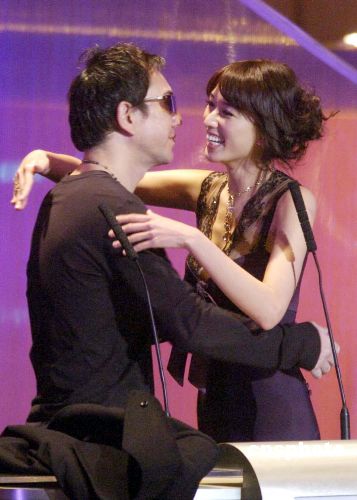 圖:金像獎頒獎禮上黃秋生擁抱林志玲