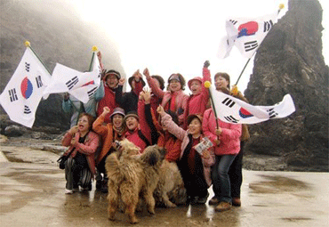 此前,他們在航行兩小時左右后看見“獨島”都走出艙外,手里揮動著太極旗,或以“獨島”為背景照像或高唱歌曲《獨島是我們的領(lǐng)土》。