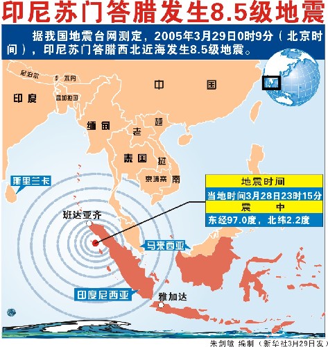 相關(guān)報道:聯(lián)合國稱尚未接到海嘯報告將向災(zāi)民提供幫助 (2005-03-29 06:28:56) 美國表示愿意向印尼等地震受災(zāi)國提供援助 (2005-03-29 06:24:32)