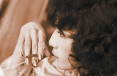幾乎與話劇《琥珀》上映的同時,劉燁的寫真集也應景上市,其中一張三分之一側面的照片在網上引起了軒然大波。照片上的劉燁戴著長長的假睫毛,鬈鬈的假發(fā),指甲涂了蔻丹的手指夾著細煙,湊在光潤的唇邊,一個風塵味十足的嫵媚女人。如果不說,沒有人能看出那是雙料影帝劉燁。特別是那濃密睫毛的大眼睛,薄嘴唇倒很像歌壇天后王菲。