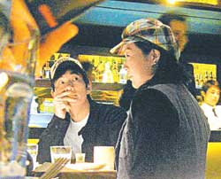 小齊偕Tina及友人,一行三人餐廳用餐,他們點(diǎn)了一桌子菜,Tina并沒(méi)有因?yàn)閼言卸貏e戒口,酸辣等菜都有進(jìn)食,坐在她身旁的小齊還關(guān)心地說(shuō):“吃多點(diǎn)啊,一人吃、兩人補(bǔ)!睂(duì)于男友的體貼,Tina笑不攏嘴,顯然非常受落。